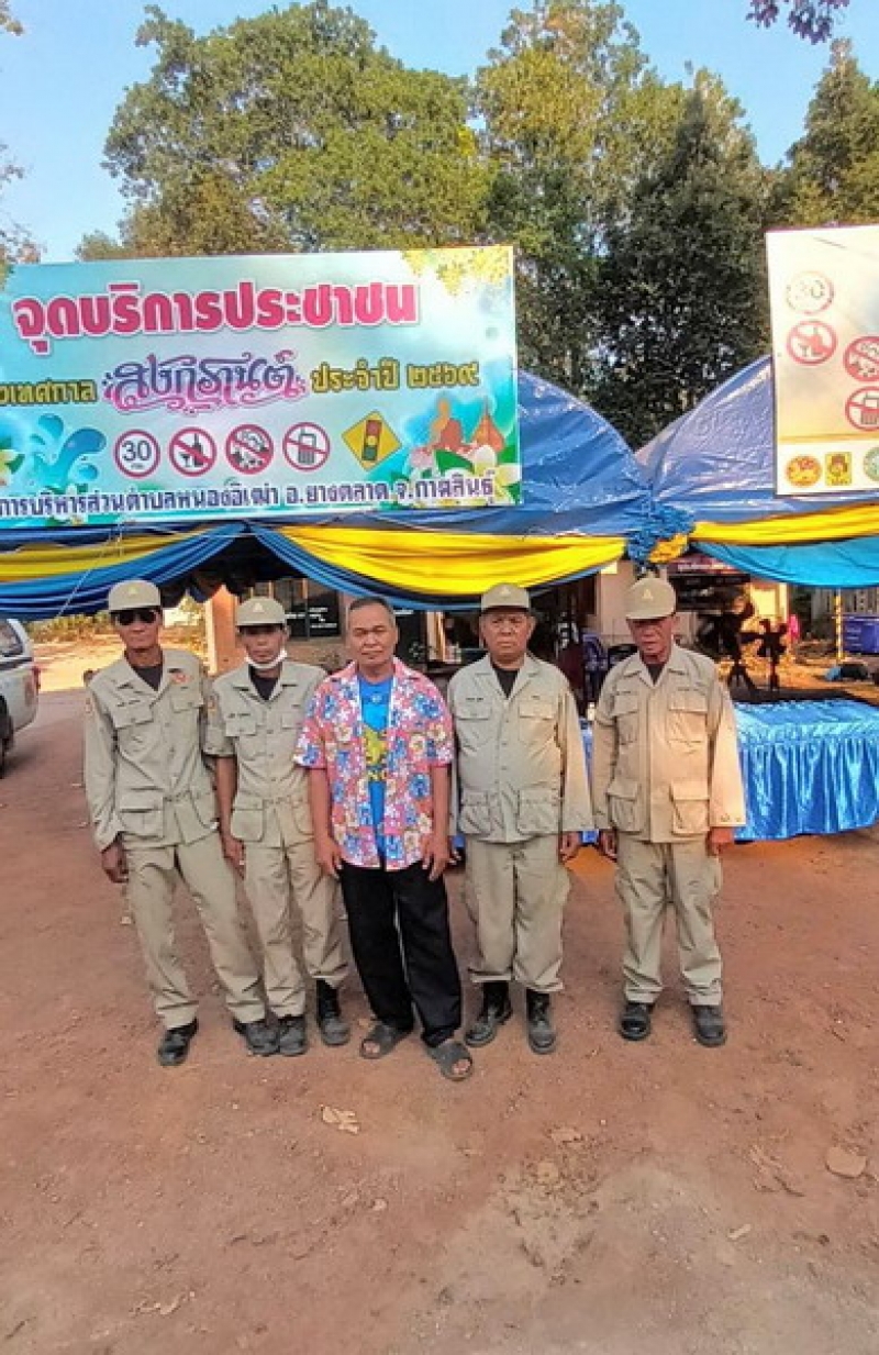 วันที่ 13 เมษายน 2569 นายบัวแก้ว ภูสูสี รองนายก อบต.หนองอิเฒ่า ตรวจเยี่ยมเจ้าหน้าที่งานป้องกันฯ , เจ้าหน้าที่ อปพร.หนองอิเฒ่า ที่ปฏิบัติหน้าที่เข้าเวรยามประจำจุดบริการประชาชนตำบลหนองอิเฒ่า ในช่วงเทศกาลสงกรานต์ ประจำปี 2569 (ตามโครงการป้องกันและลดอุบัติเหตุทางถนน ช่วงเทศกาลสงกรานต์ ประจำปี 2569 ระหว่างวันที่ 10 - 16 เมษายน 2569) ณ จุดบริการประชาชนตำบลหนองอิเฒ่า ต.หนองอิเฒ่า อ.ยางตลาด จ.กาฬสินธุ์