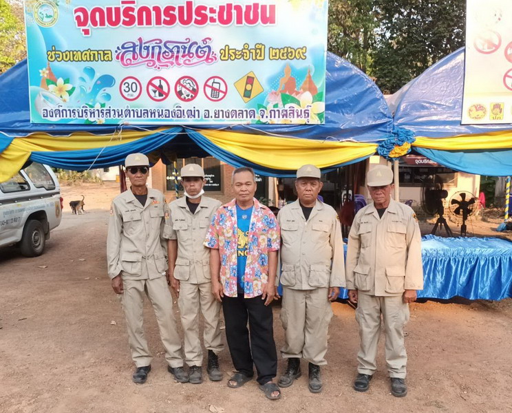 วันที่ 13 เมษายน 2569 นายบัวแก้ว ภูสูสี รองนายก อบต.หนองอิเฒ่า ตรวจเยี่ยมเจ้าหน้าที่งานป้องกันฯ , เจ้าหน้าที่ อปพร.หนองอิเฒ่า ที่ปฏิบัติหน้าที่เข้าเวรยามประจำจุดบริการประชาชนตำบลหนองอิเฒ่า ในช่วงเทศกาลสงกรานต์ ประจำปี 2569 (ตามโครงการป้องกันและลดอุบัติเหตุทางถนน ช่วงเทศกาลสงกรานต์ ประจำปี 2569 ระหว่างวันที่ 10 - 16 เมษายน 2569) ณ จุดบริการประชาชนตำบลหนองอิเฒ่า ต.หนองอิเฒ่า อ.ยางตลาด จ.กาฬสินธุ์